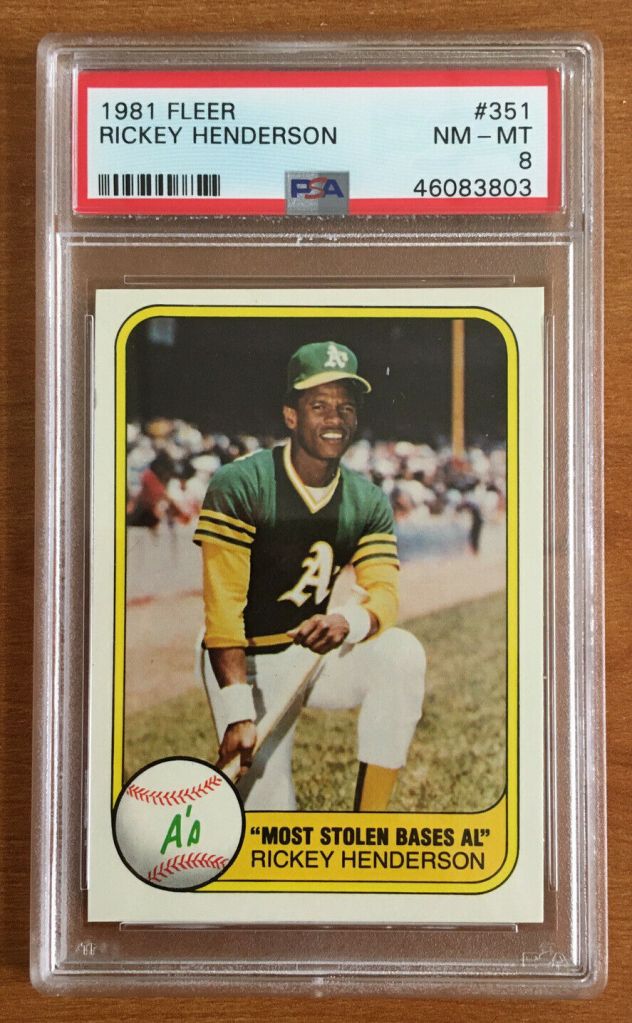 1981 Fleer Rickey Henderson PSA 8 Posted bycardboardgemsAugust 12, 2020August 12, 2020Posted inUncategorized 1981 Fleer 351 Rickey Henderson PSA 8 NM – MINT Oakland Athletics HOF Share this: Share on X (Opens in new window) X Share on Facebook (Opens in new window) Facebook Like Loading... Related