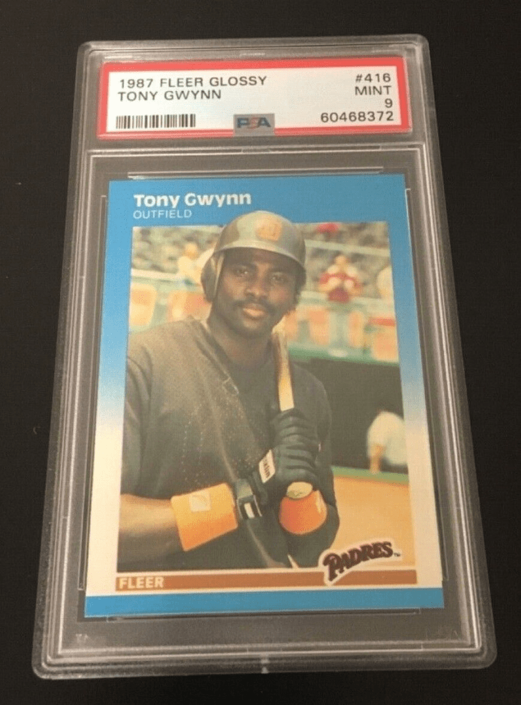 1987 TONY GWYNN PSA 9 MINT Posted bycardboardgemsJuly 15, 2022Posted inUncategorized 1987 Fleer Glossy #416 Tony Gwynn PSA 9 MINT Padres HOF Share this: Click to share on X (Opens in new window) X Click to share on Facebook (Opens in new window) Facebook Like Loading... Related